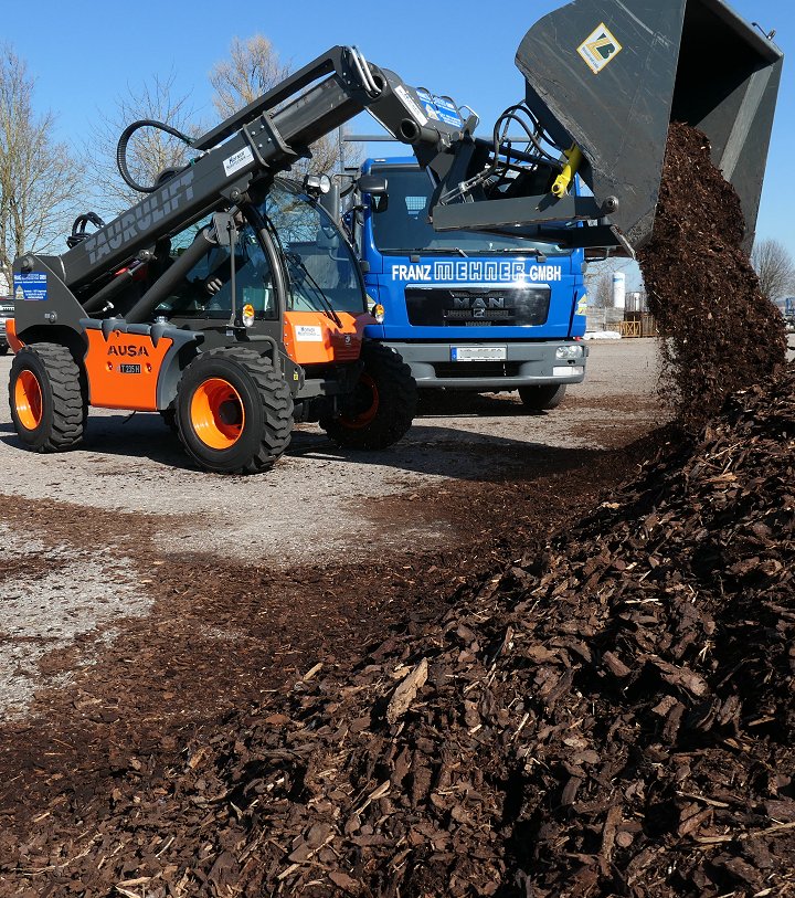 Fein gehäckselter Rindenmulch ist bei uns in Klein- und Großmengen zu haben. Mit unserem Radlader sind auch große Mengen schnell verladen.